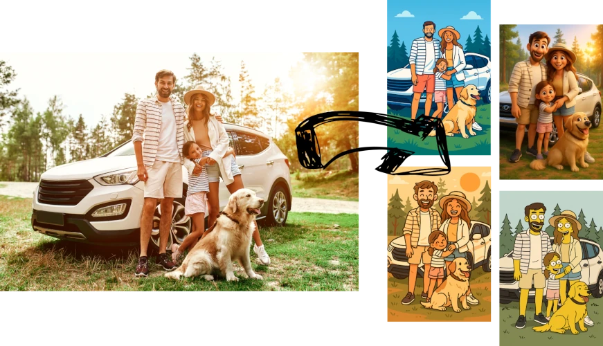 Kies een beeldstijl en de beeldverhouding, upload je foto en ervaar de magie van de AI-transformatie. Je afbeelding wordt één keer naar onze AI-dienst (OpenAI, USA) gestuurd en als kunstwerk teruggestuurd.