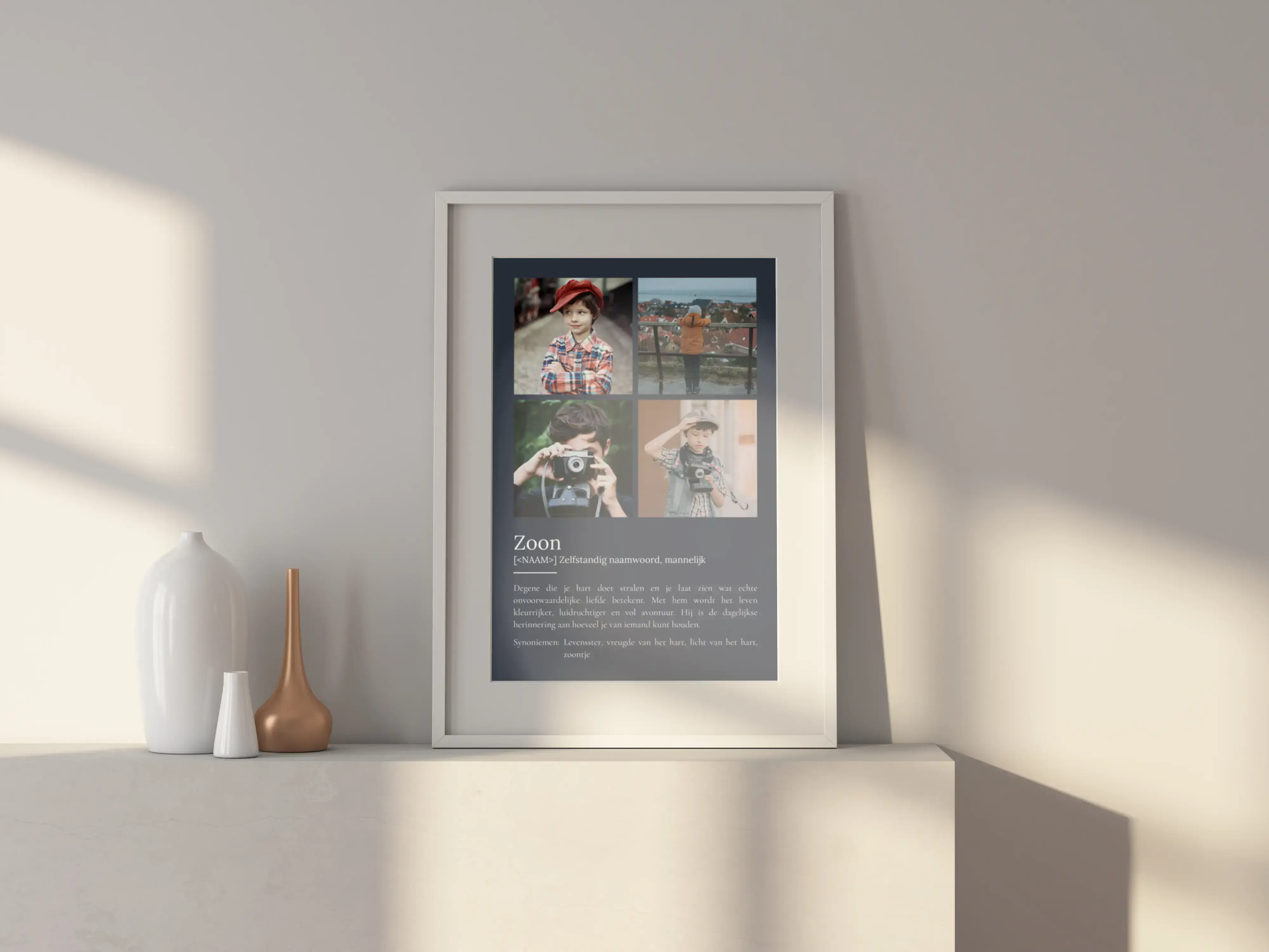 Definieer 'Zoon': Geef liefde een gezicht met gepersonaliseerde fotocollage en hartverwarmende boodschap.