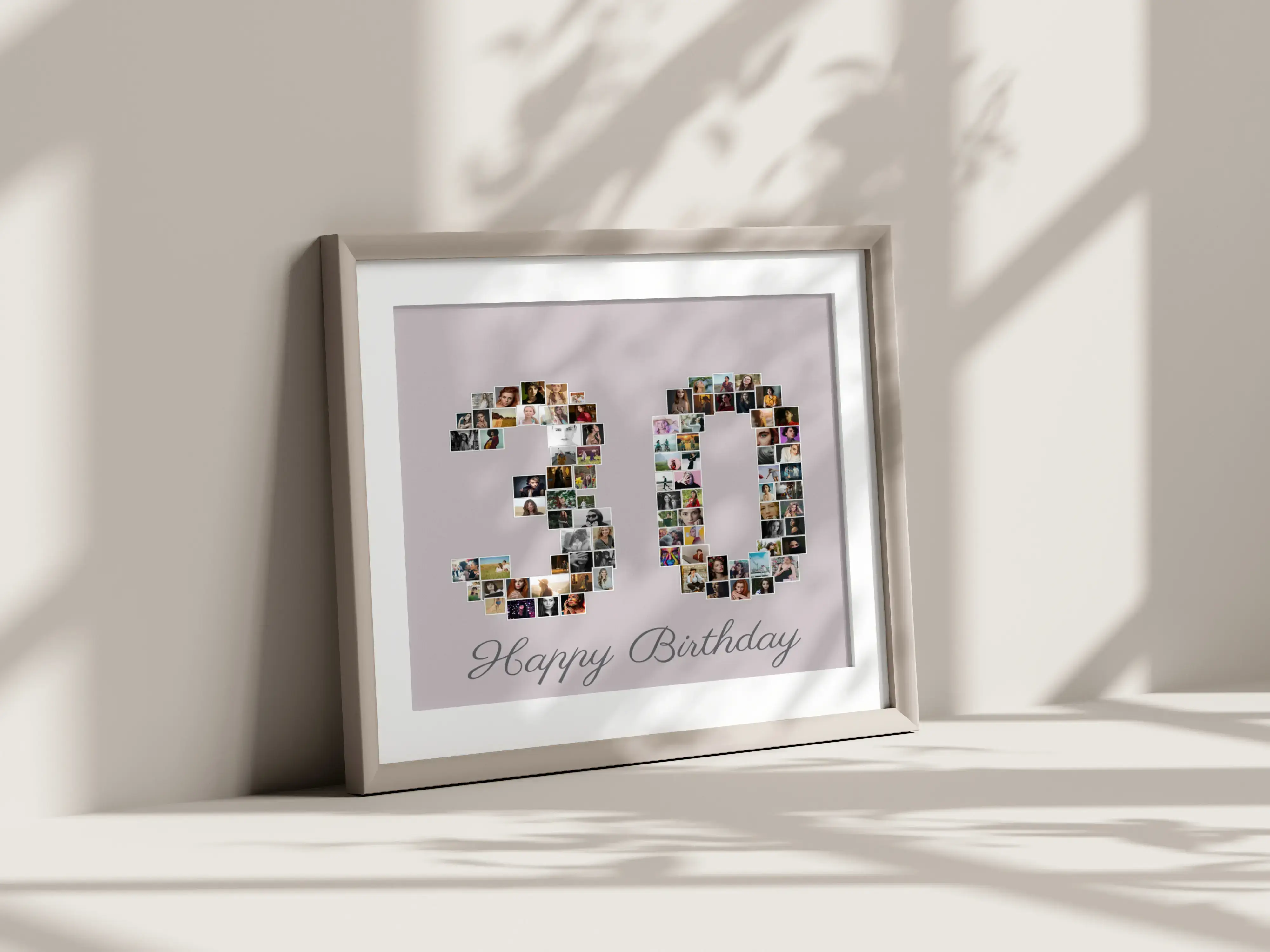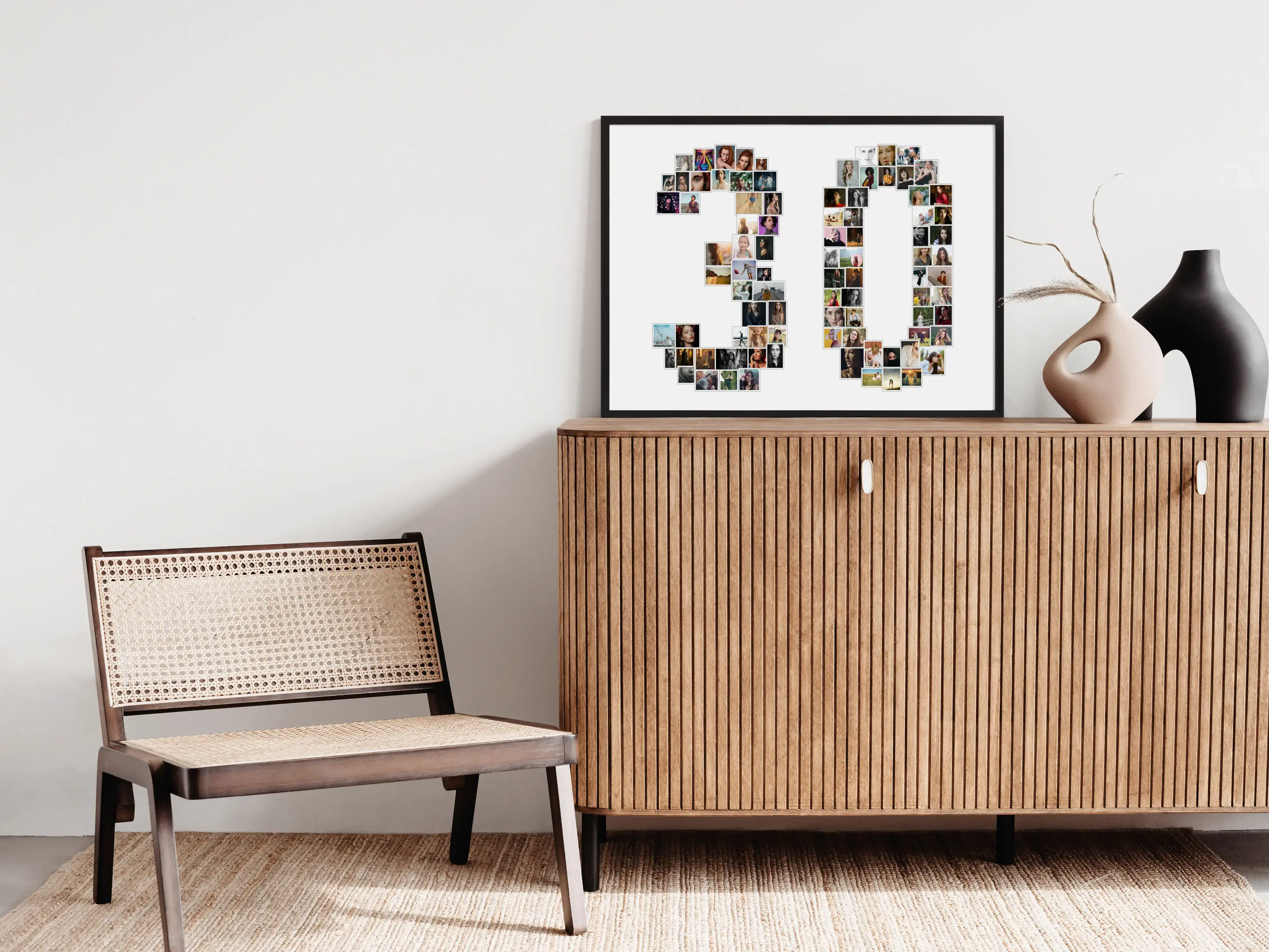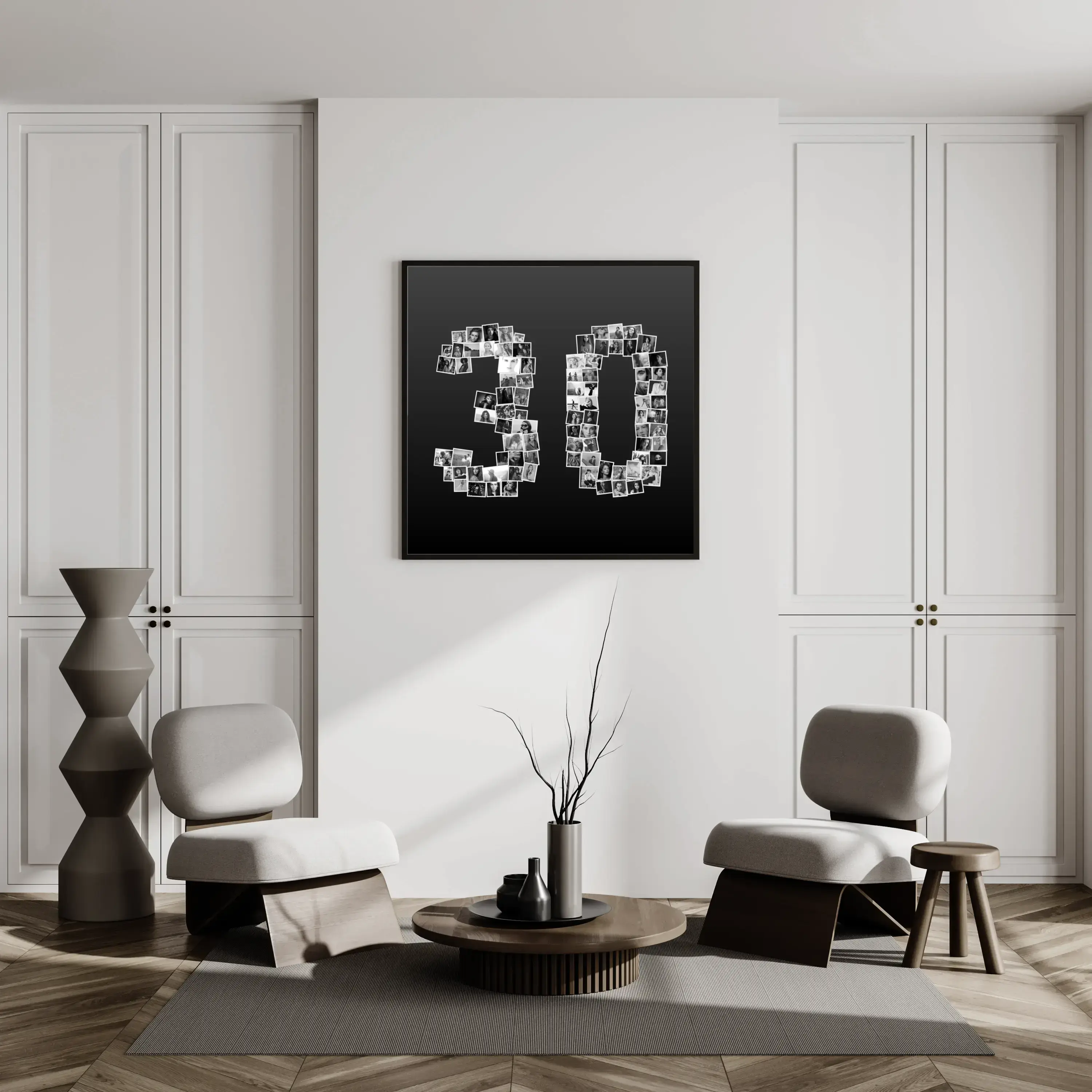 Vier de 30 met een unieke fotocollage. Perfect voor jubilea en speciale gelegenheden.
