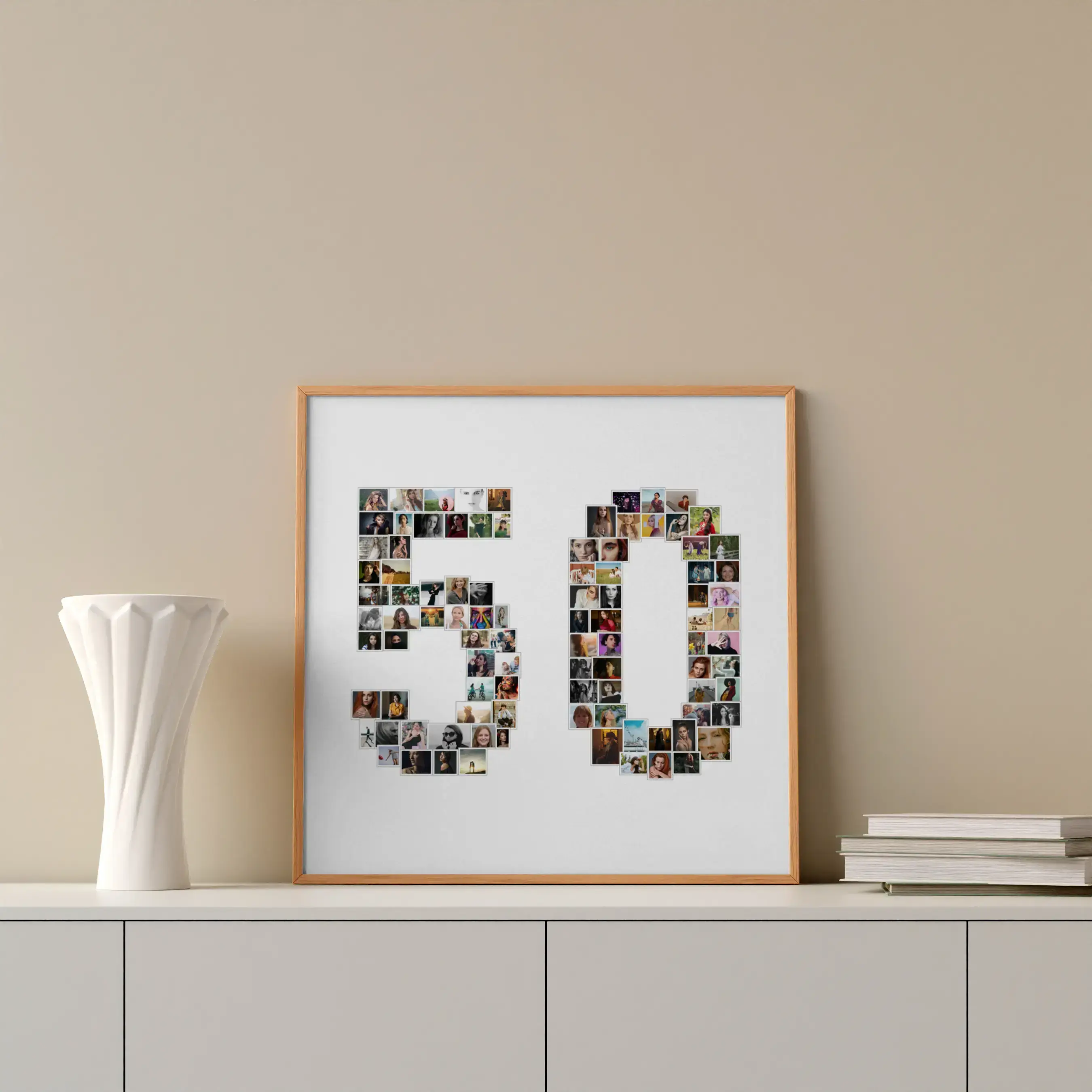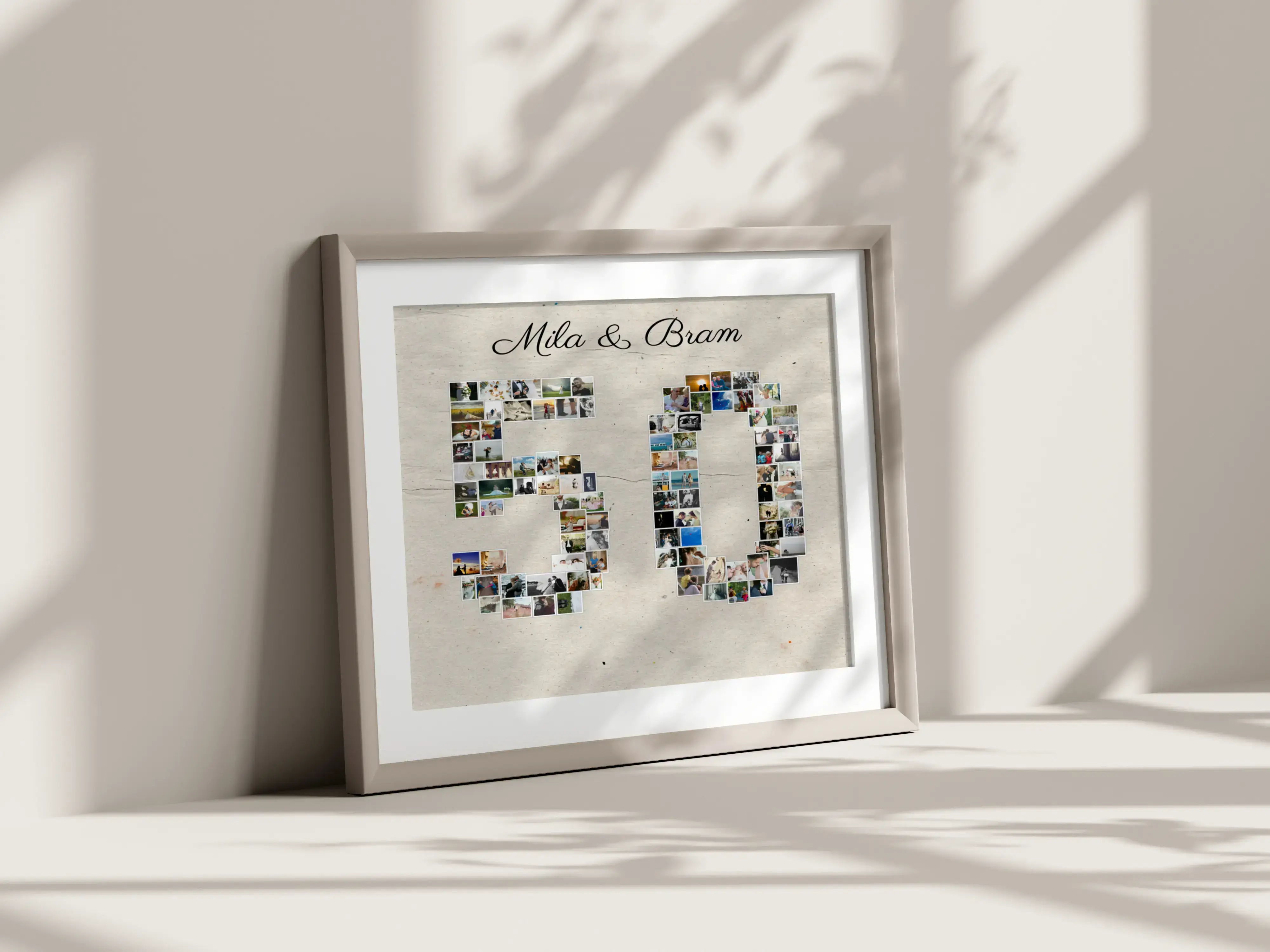 Unieke collage '50' met 1-100 foto's, ideaal voor verjaardagen en goud huwelijksjubileum.