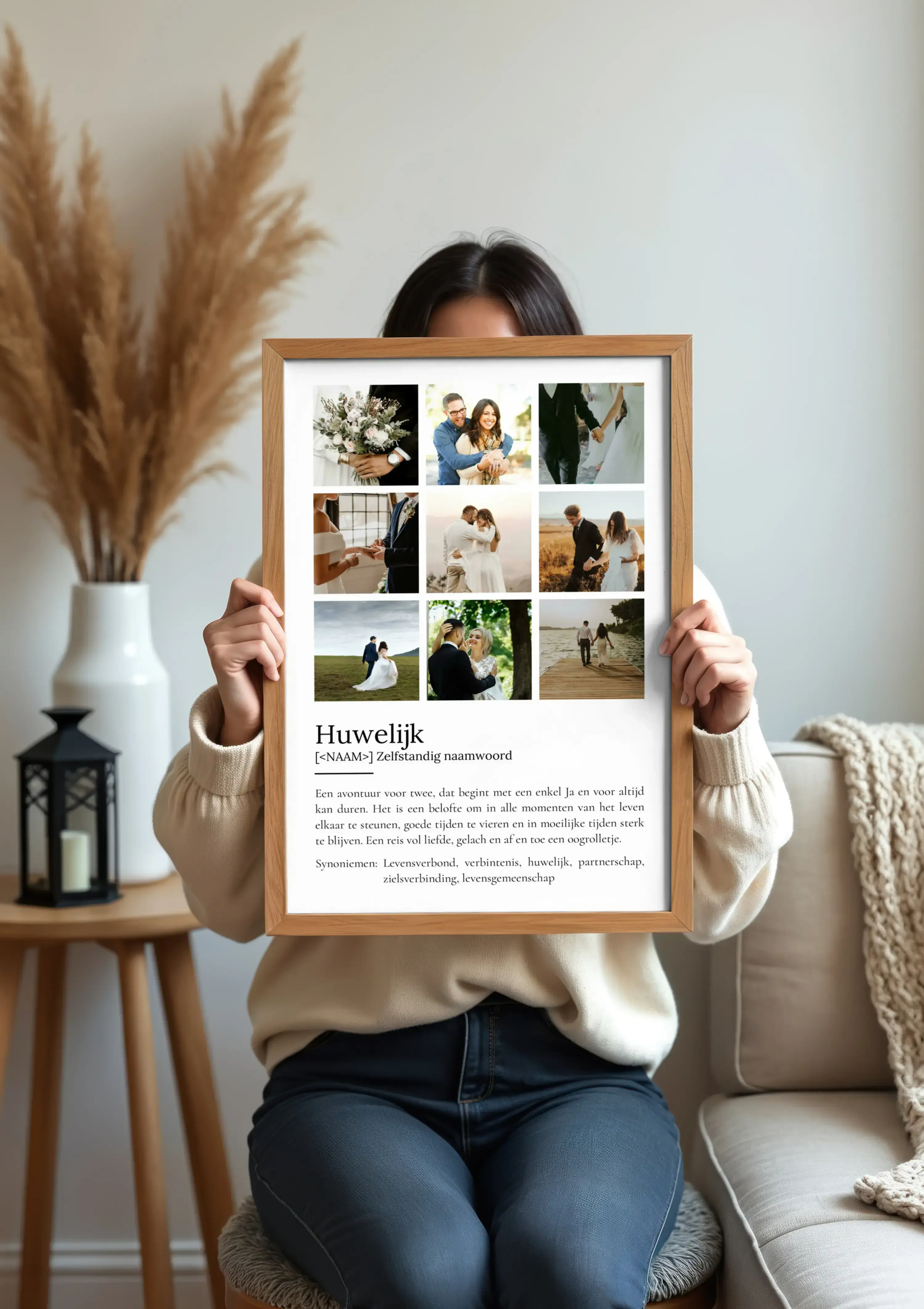 Een gepersonaliseerd huwelijkscadeau: liefdevolle definitie met eigen foto(s) voor eeuwige herinneringen.