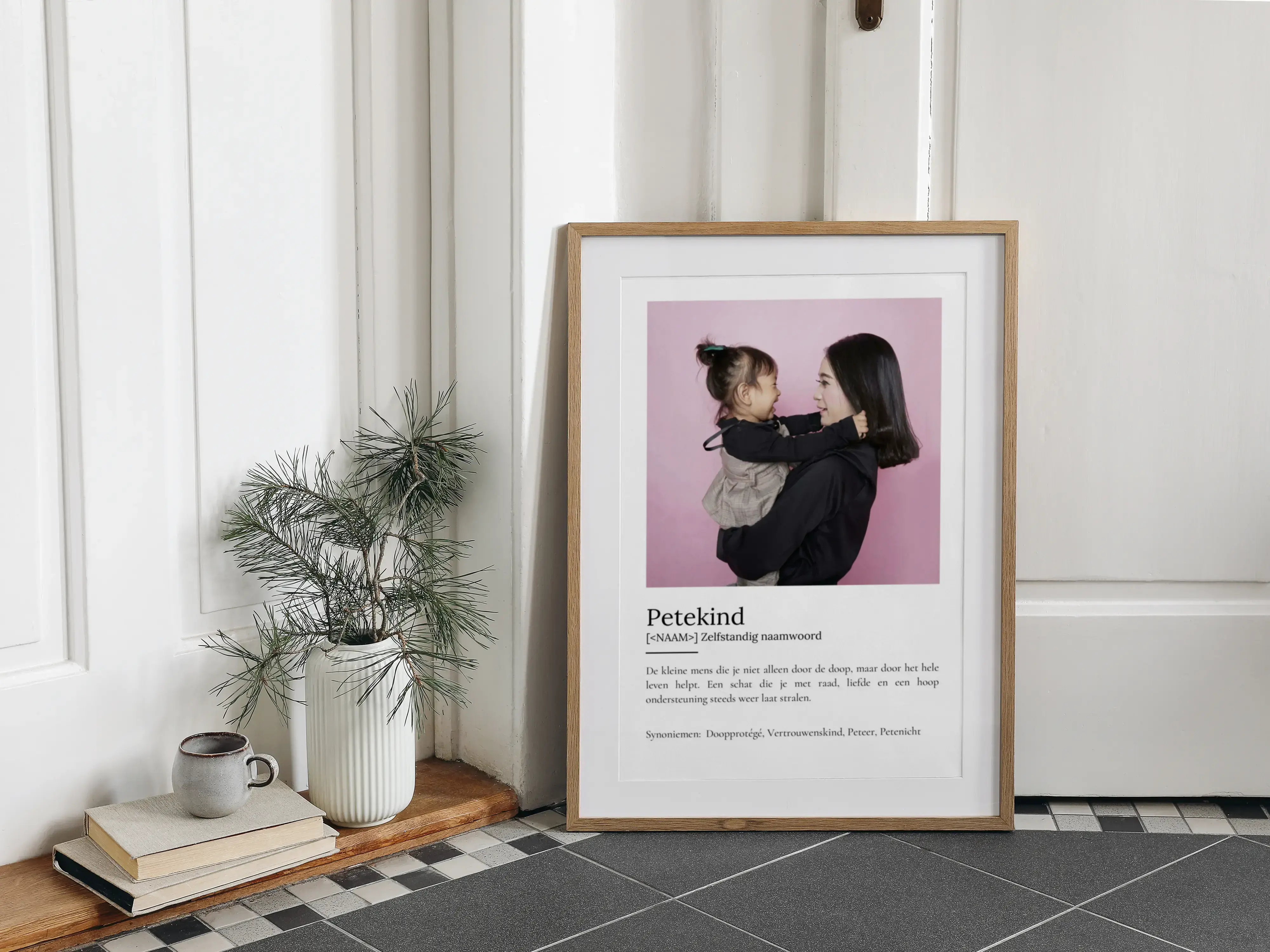 Persoonlijk cadeau voor het petekind: een poster met foto en lieve definitie in Duden-stijl.