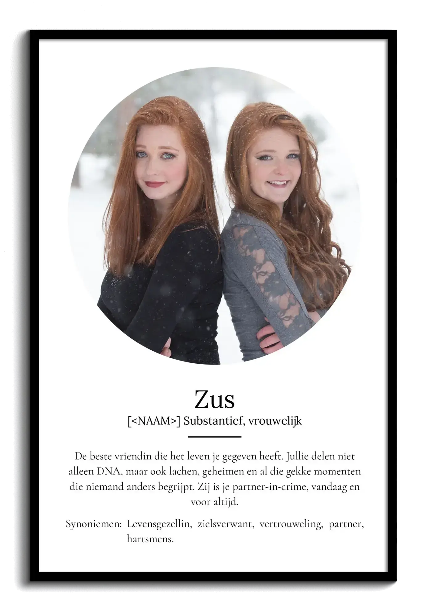 Definitieposter 'Zus': Persoonlijk cadeau met foto en tekst aanpassen