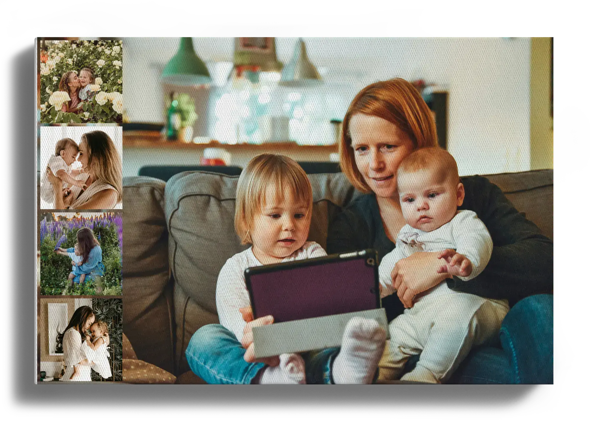 Ontdek de magie van persoonlijke herinneringen met onze fotocollage. Stel je eigen collage samen uit foto's van jou en je kinderen, speciaal voor Moederdag. Voeg een persoonlijke touch toe met teksten zoals "Alles Liefde voor Moederdag" of "Dank je, Mama". Maak het vandaag nog en laat je kinderlach stralen aan de muur in jouw huis.