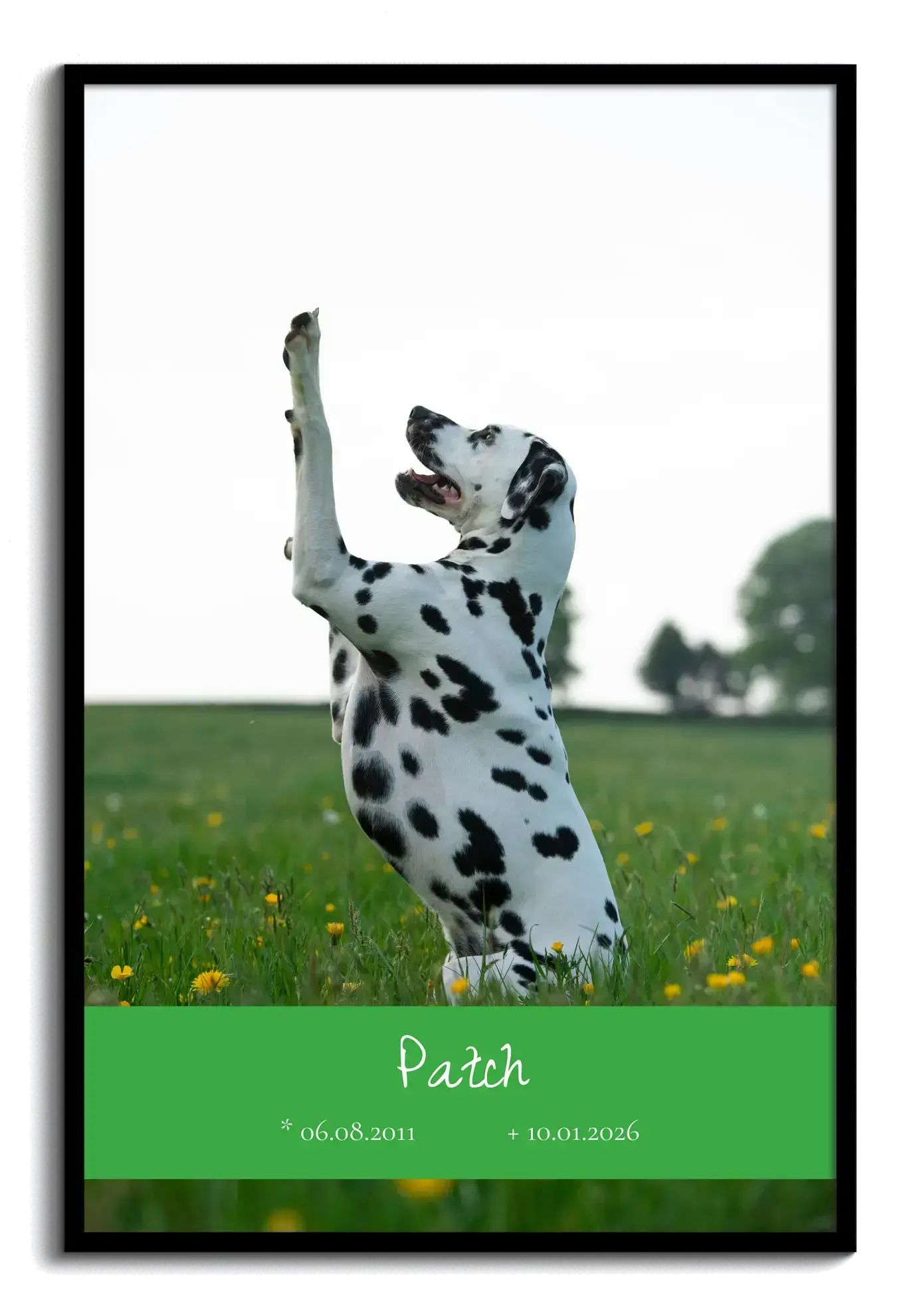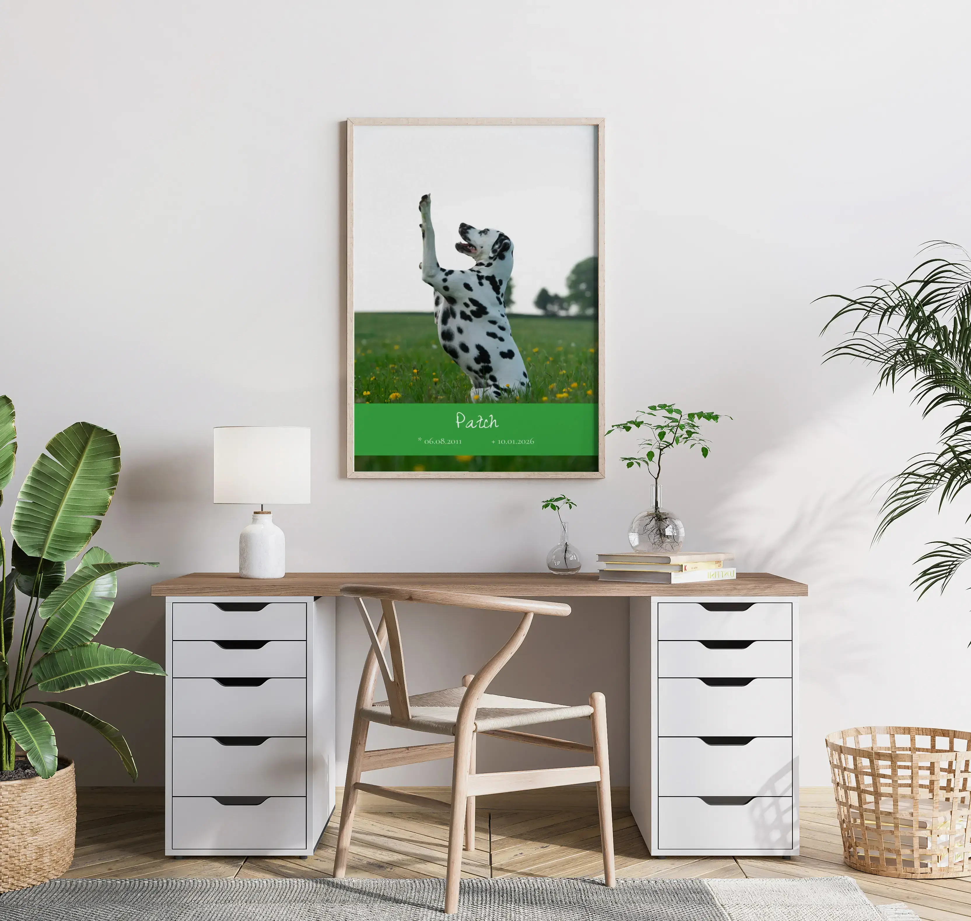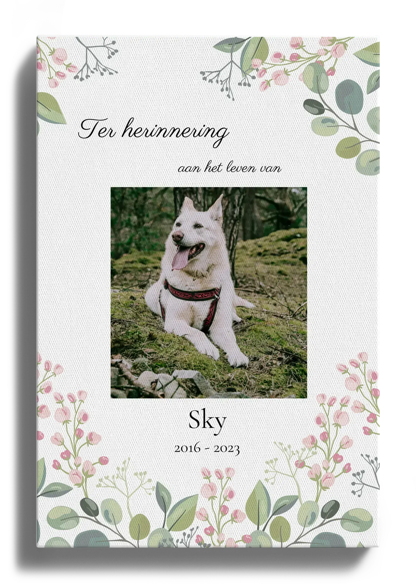 Gedenkposter hond – ontwerp jouw poster met foto, naam, geboorte- en sterfdatum en tekst