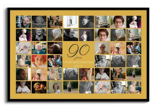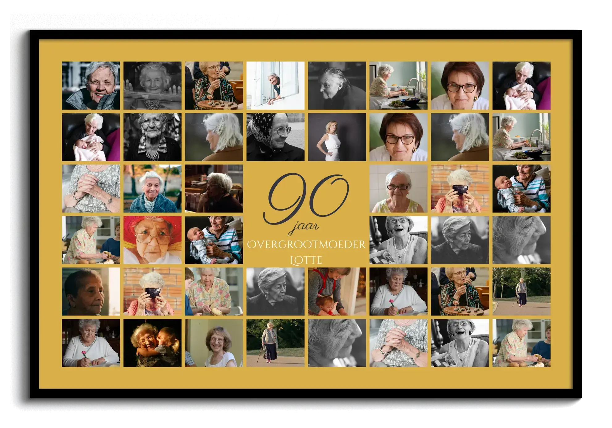 Bijzonder 90-jaar-cadeau: collage voor 90e verjaardag, jubileum of familiefeest.