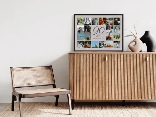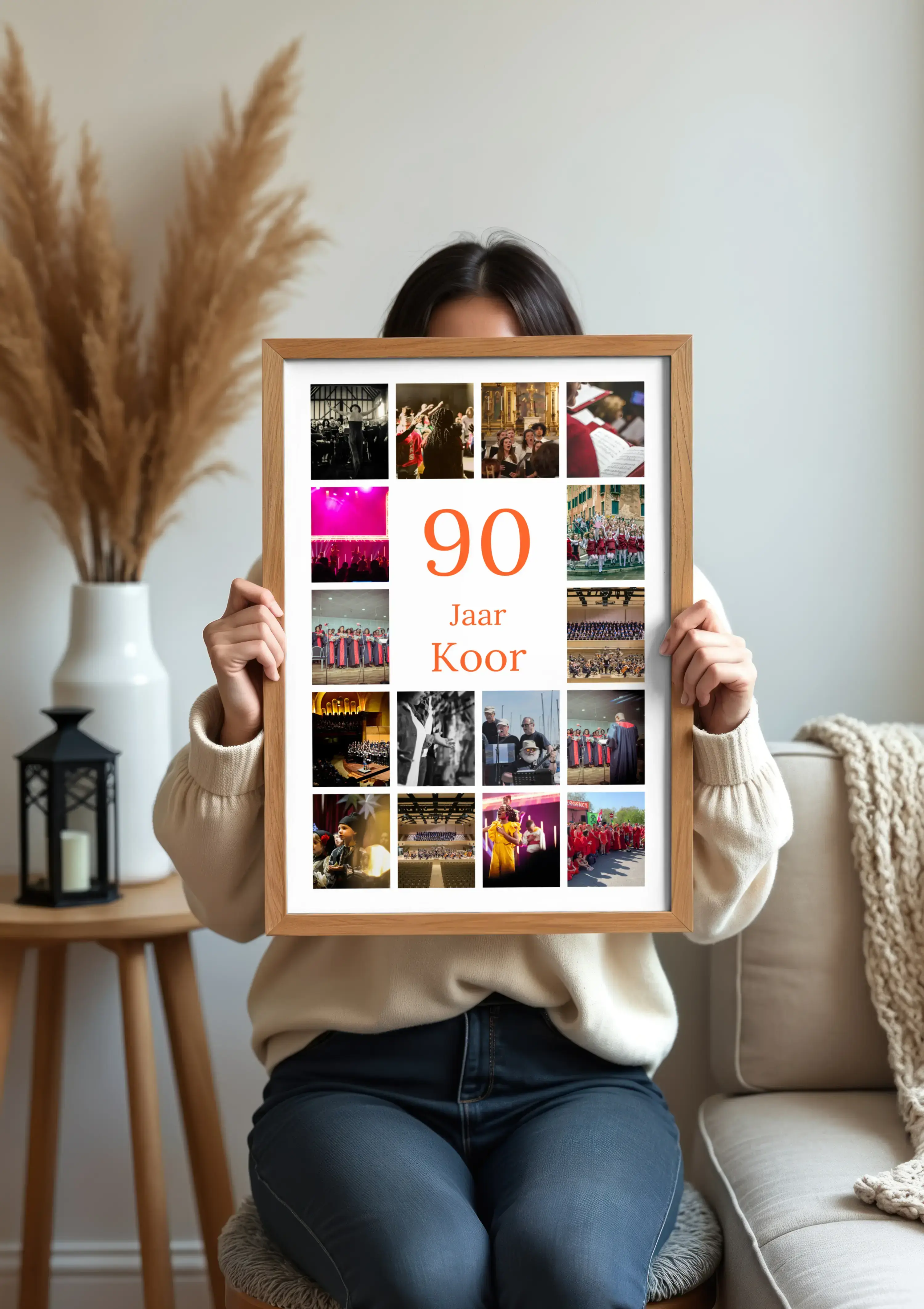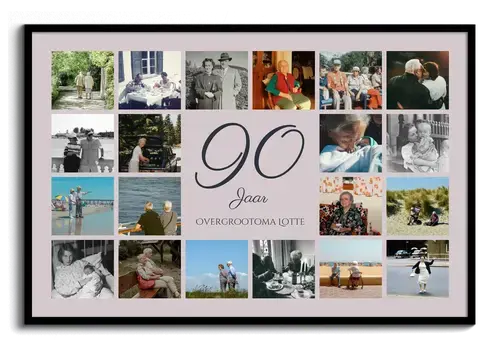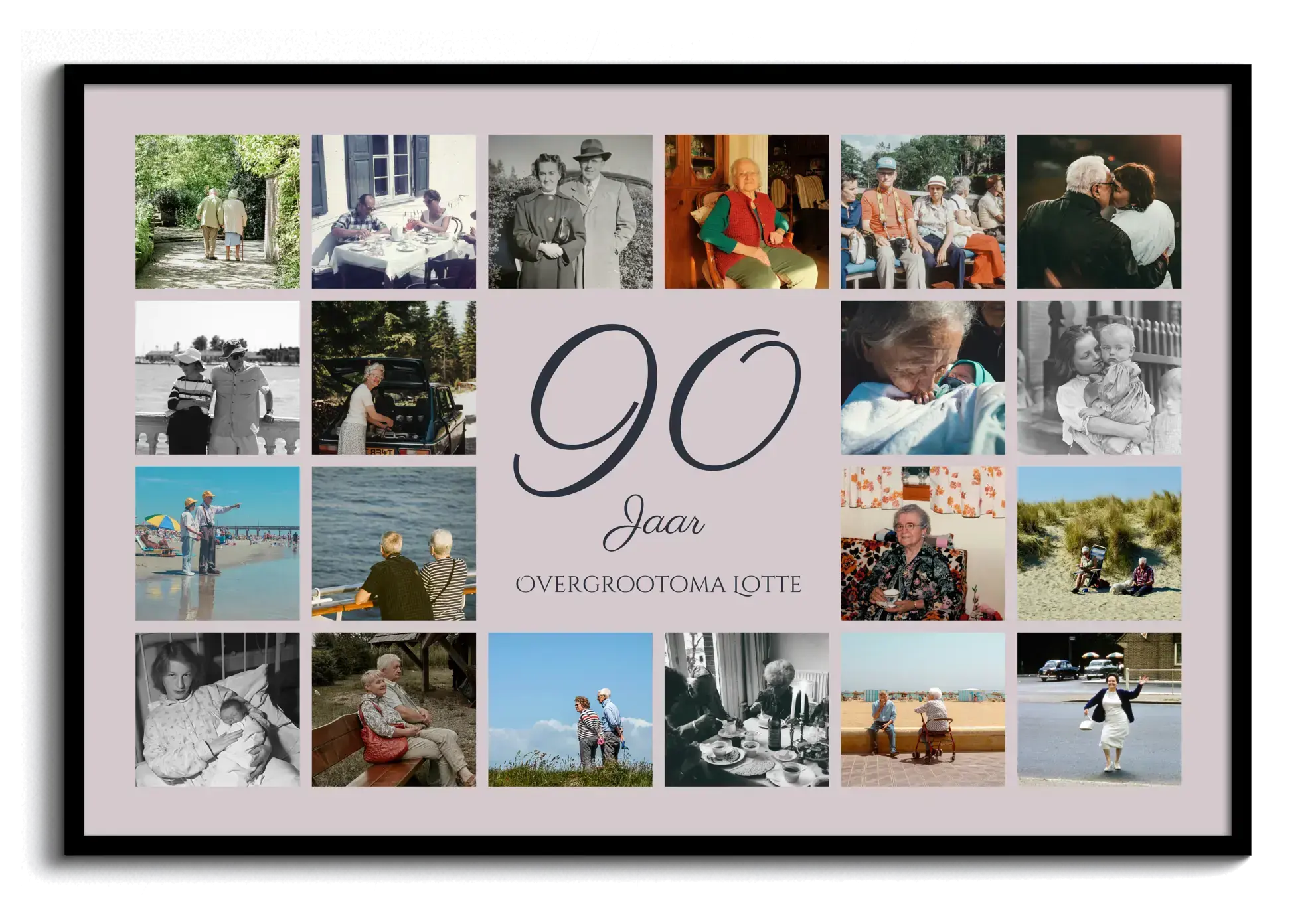 Bijzonder 90-jaar-cadeau: collage voor 90e verjaardag, jubileum of familiefeest.