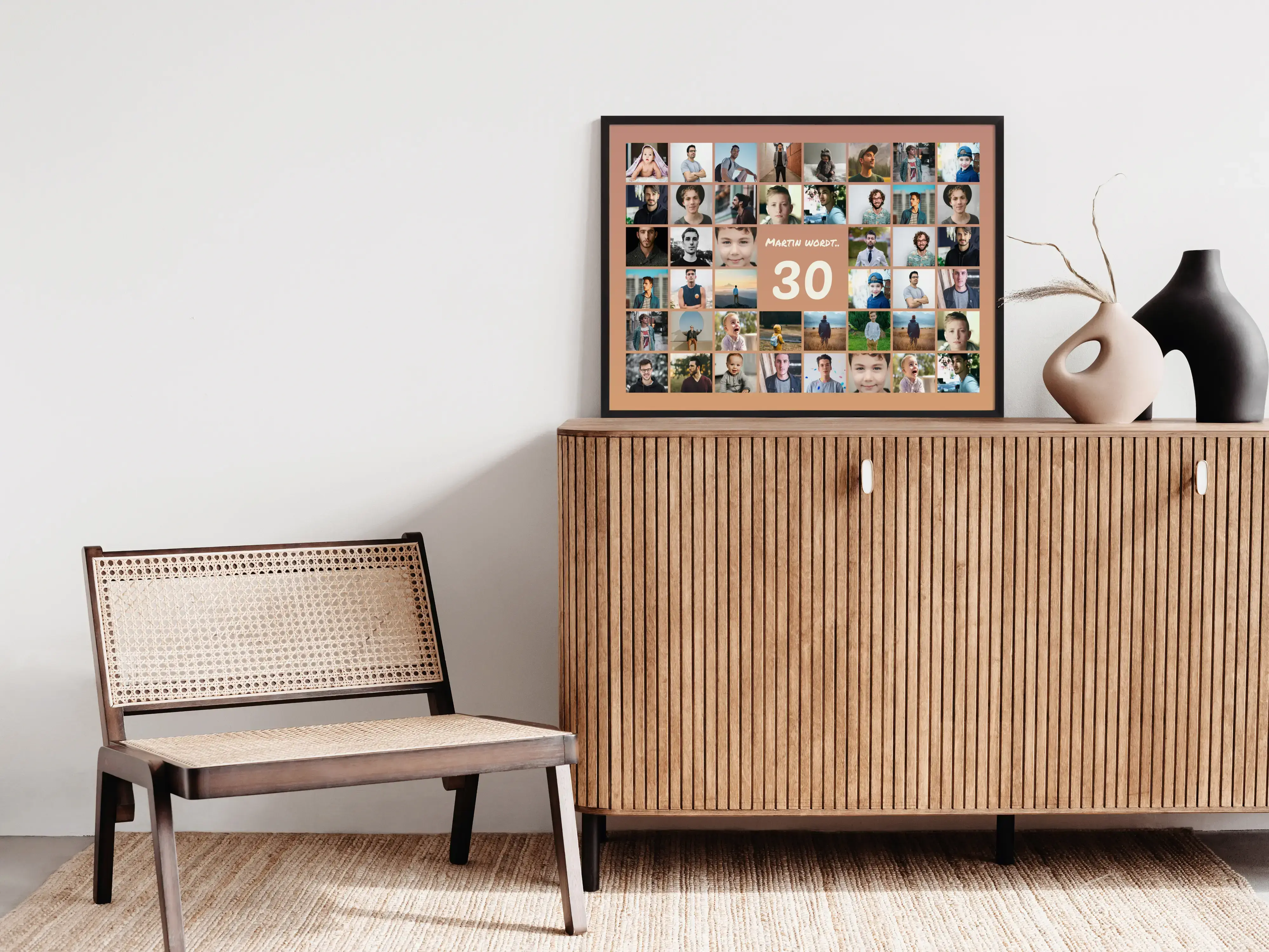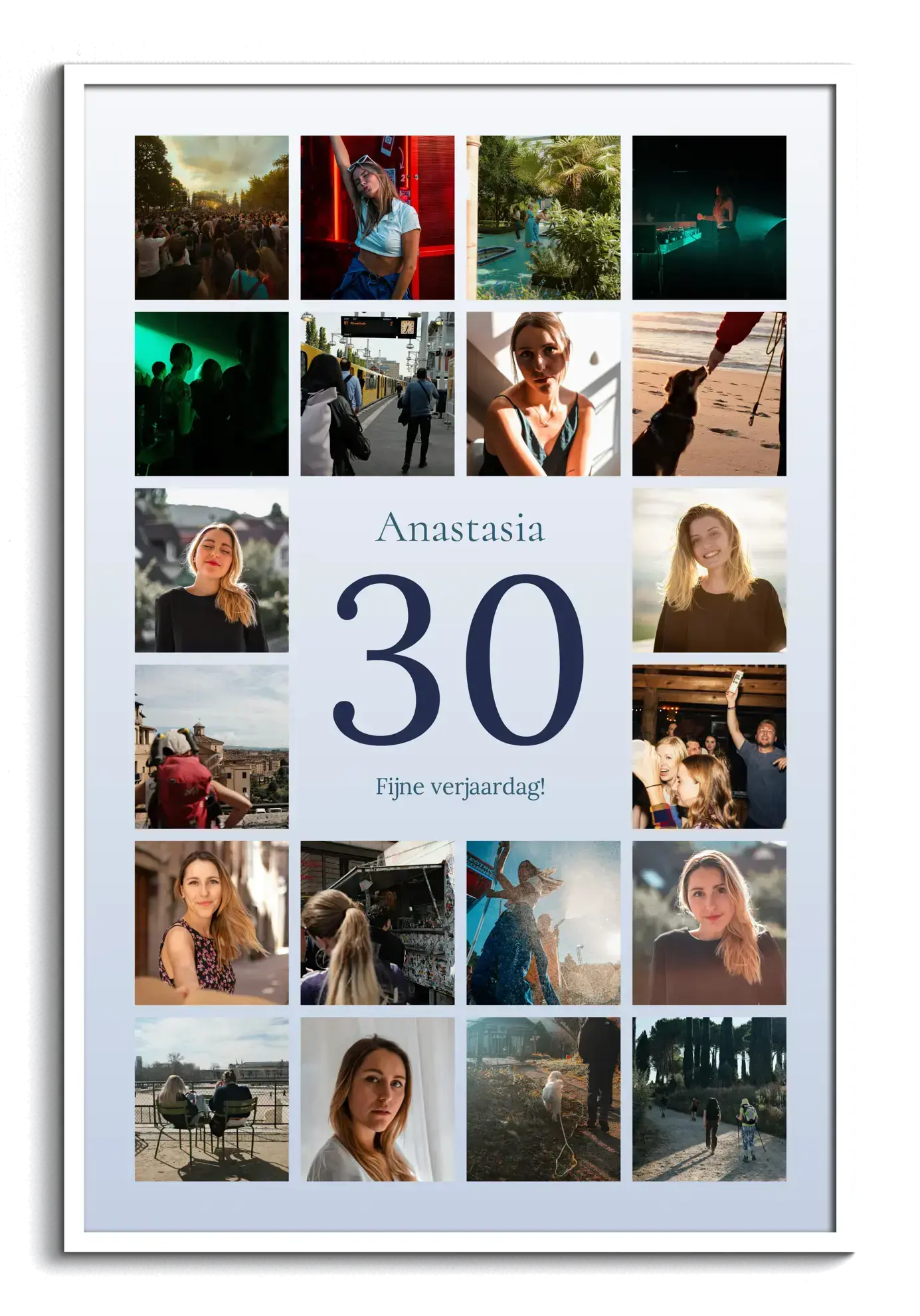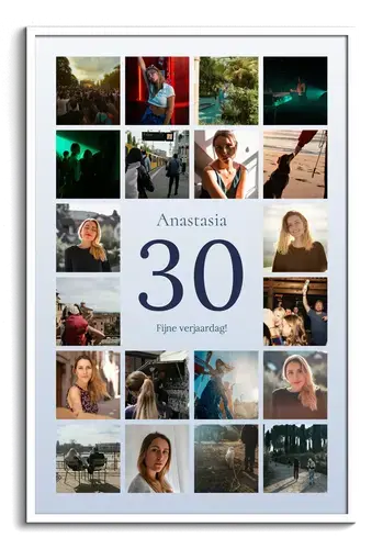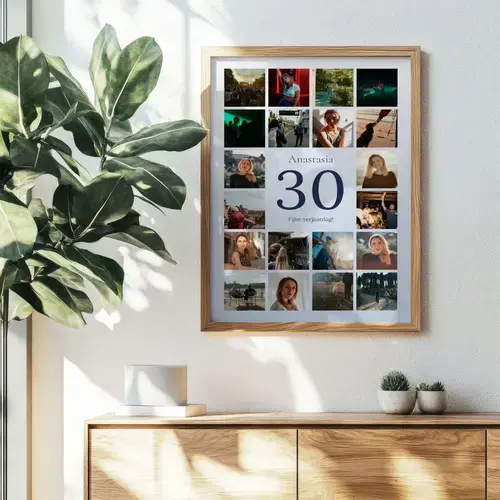 Collage 30: grote 30 met 20–80 foto's; perfect voor 30e verjaardag, trouwdag of dienstjubileum.