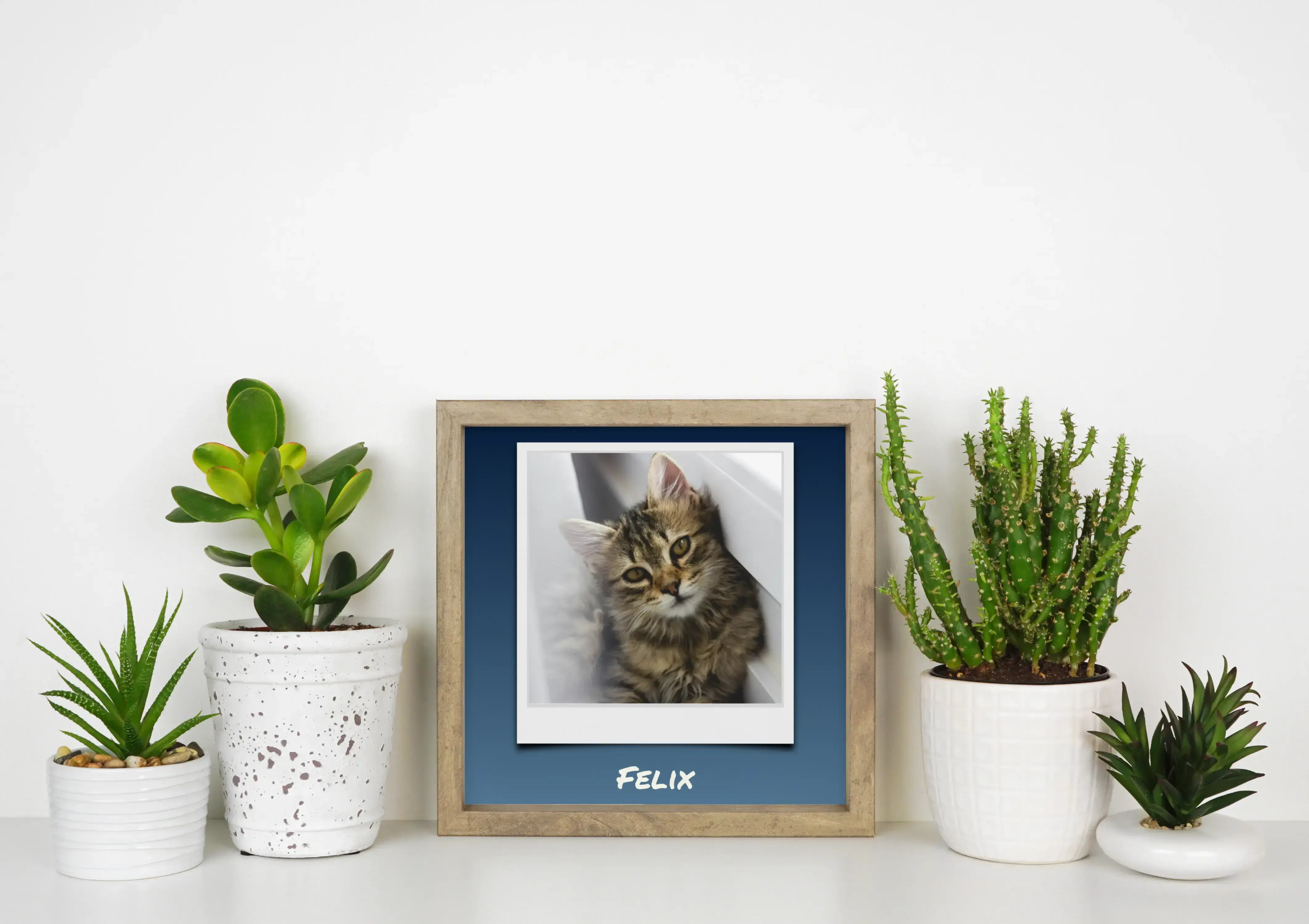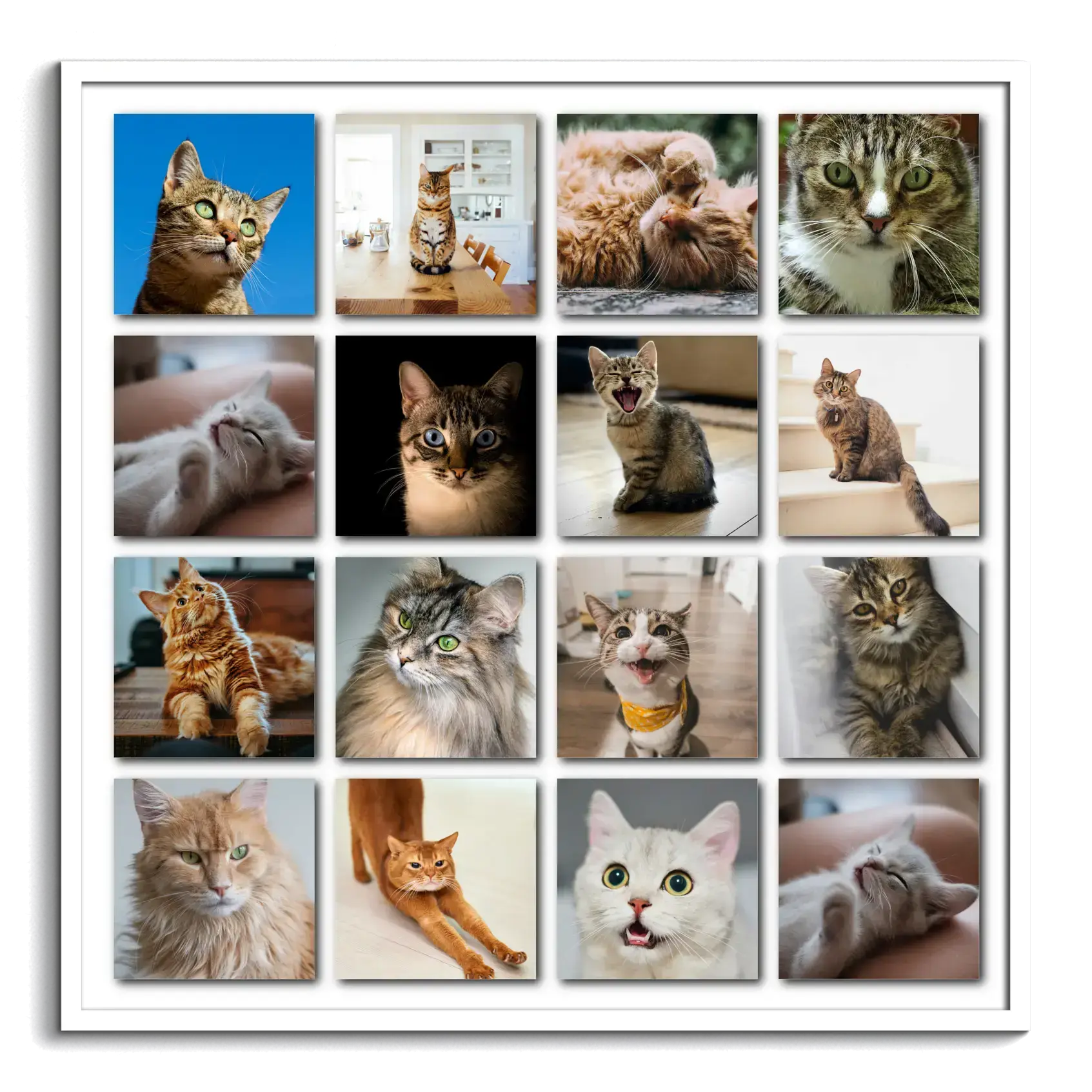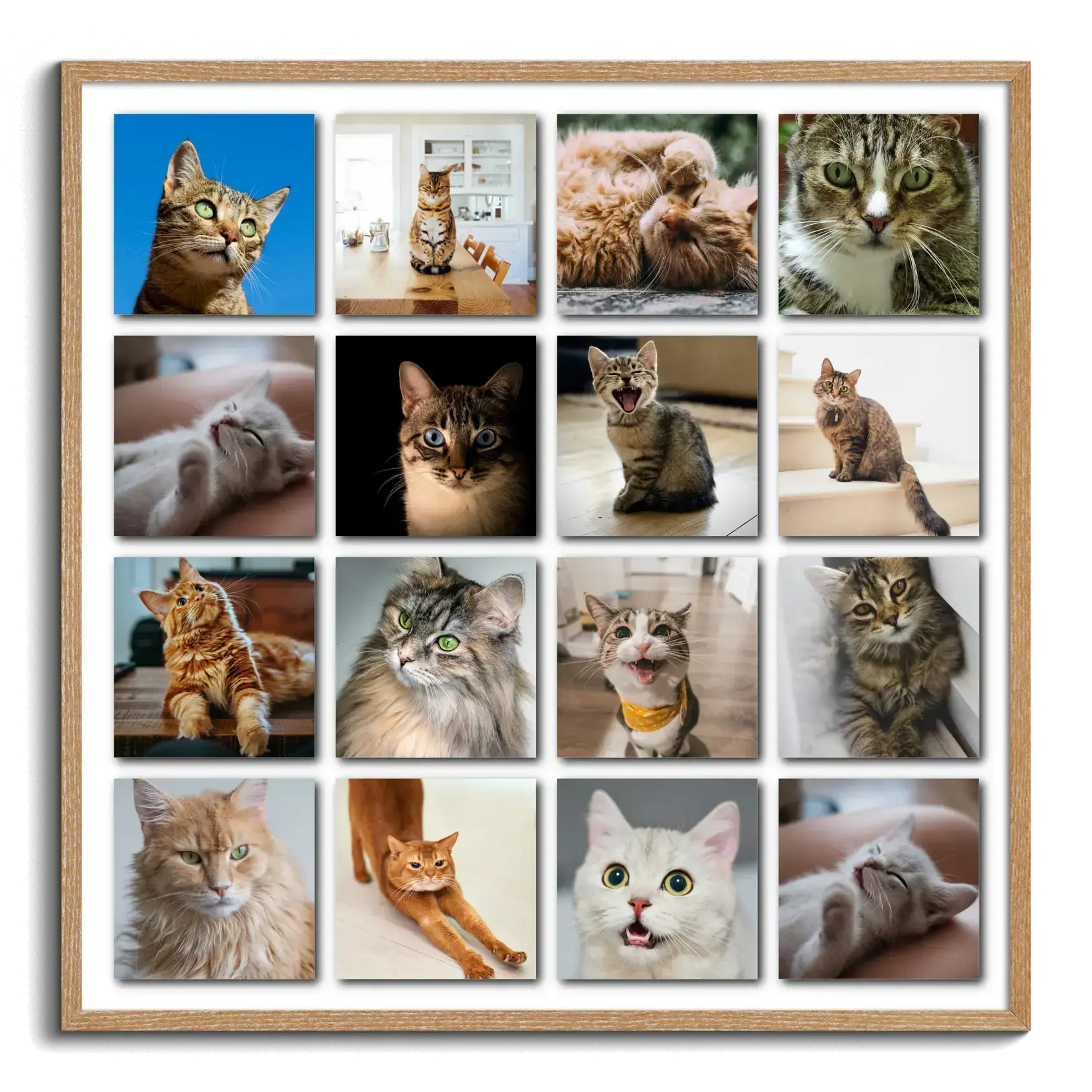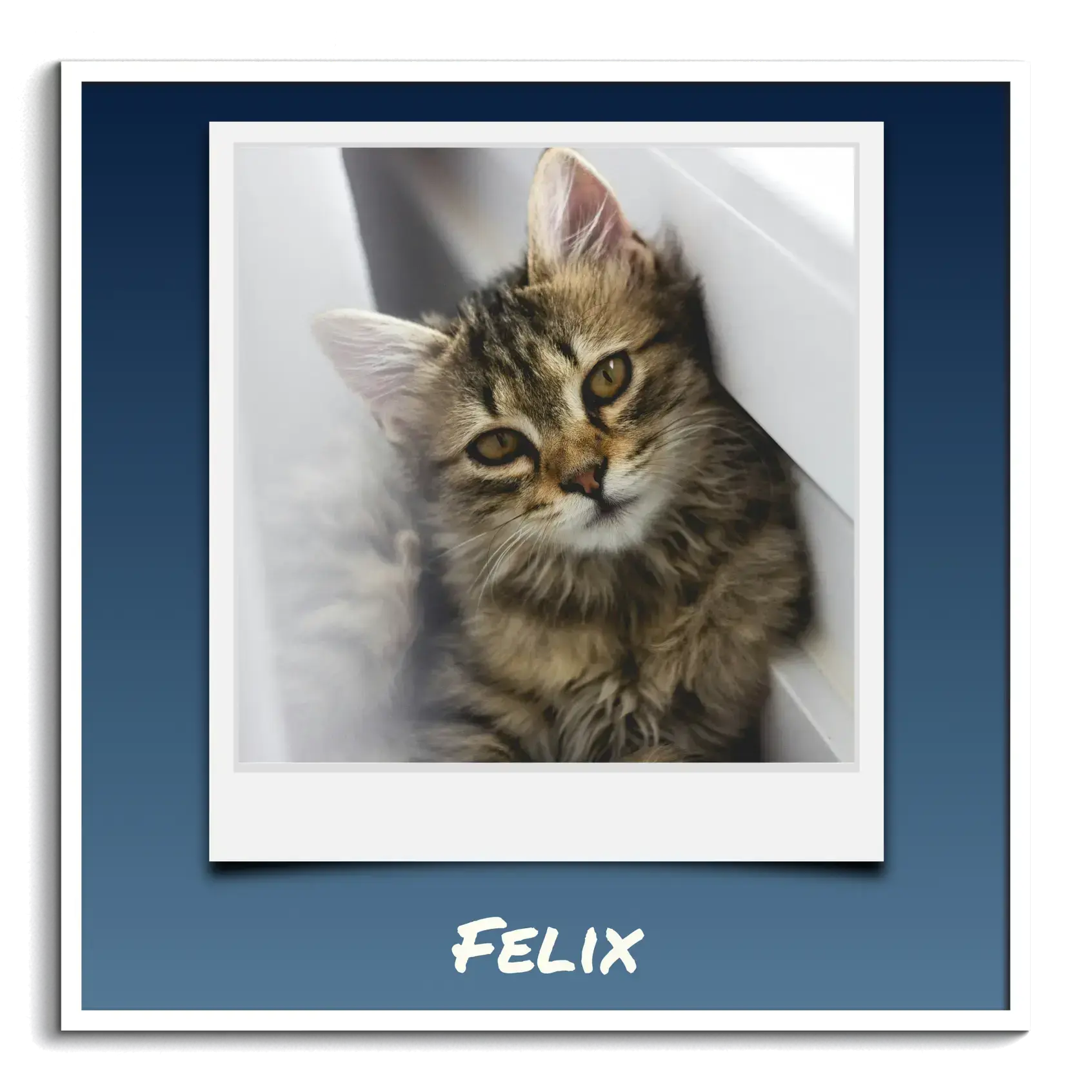 Kattenfoto's in een Polaroid-collage, met eigen tekst zoals Floris de kater of een naam.