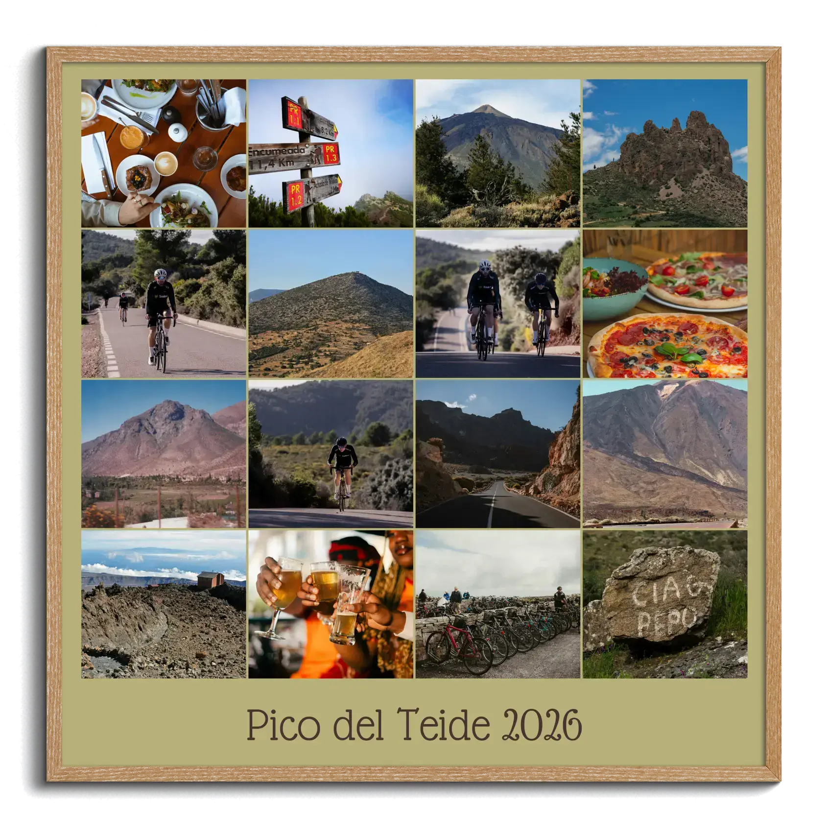 Deze wielren-collage past goed bij veel momenten. Denk aan een herinnering aan een granfondo, een fietsvakantie, een eerste beklimming, een teamseizoen of een bijzondere prestatie. Ook als cadeau voor een verjaardag, jubileum, afscheid van een ploeggenoot of na een sportieve challenge is dit een persoonlijk en passend idee.