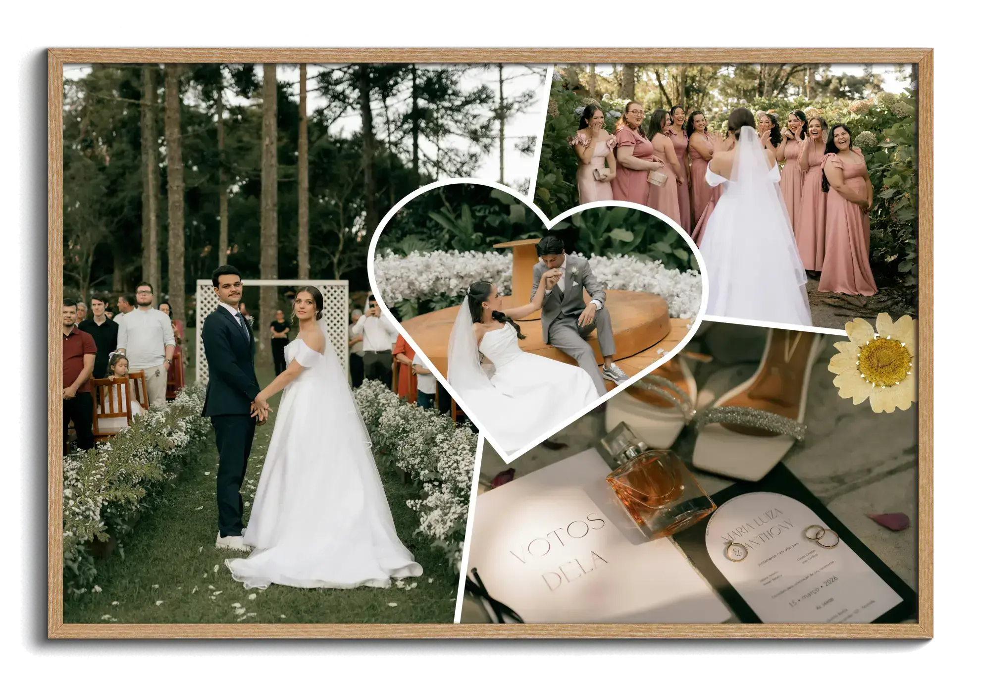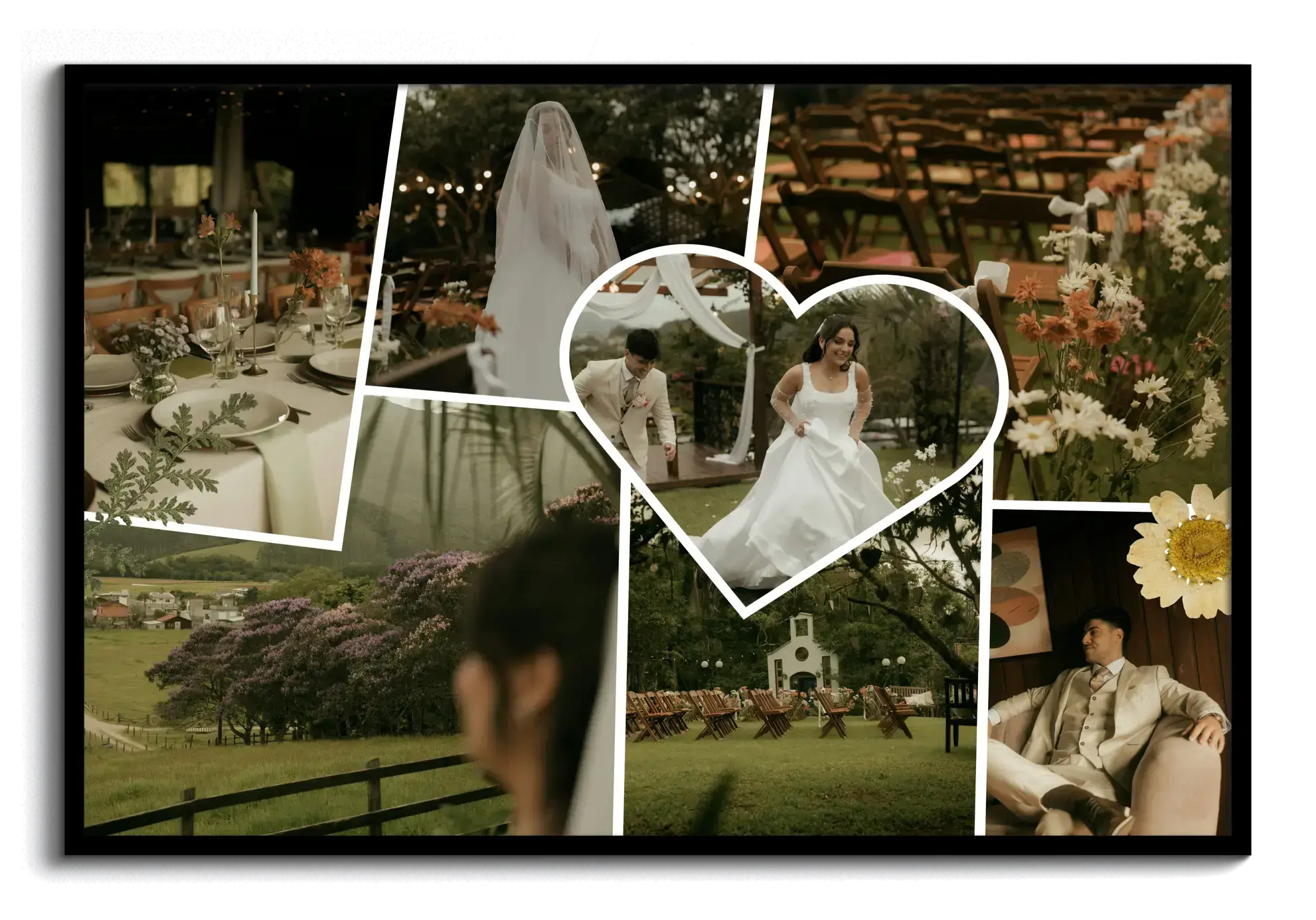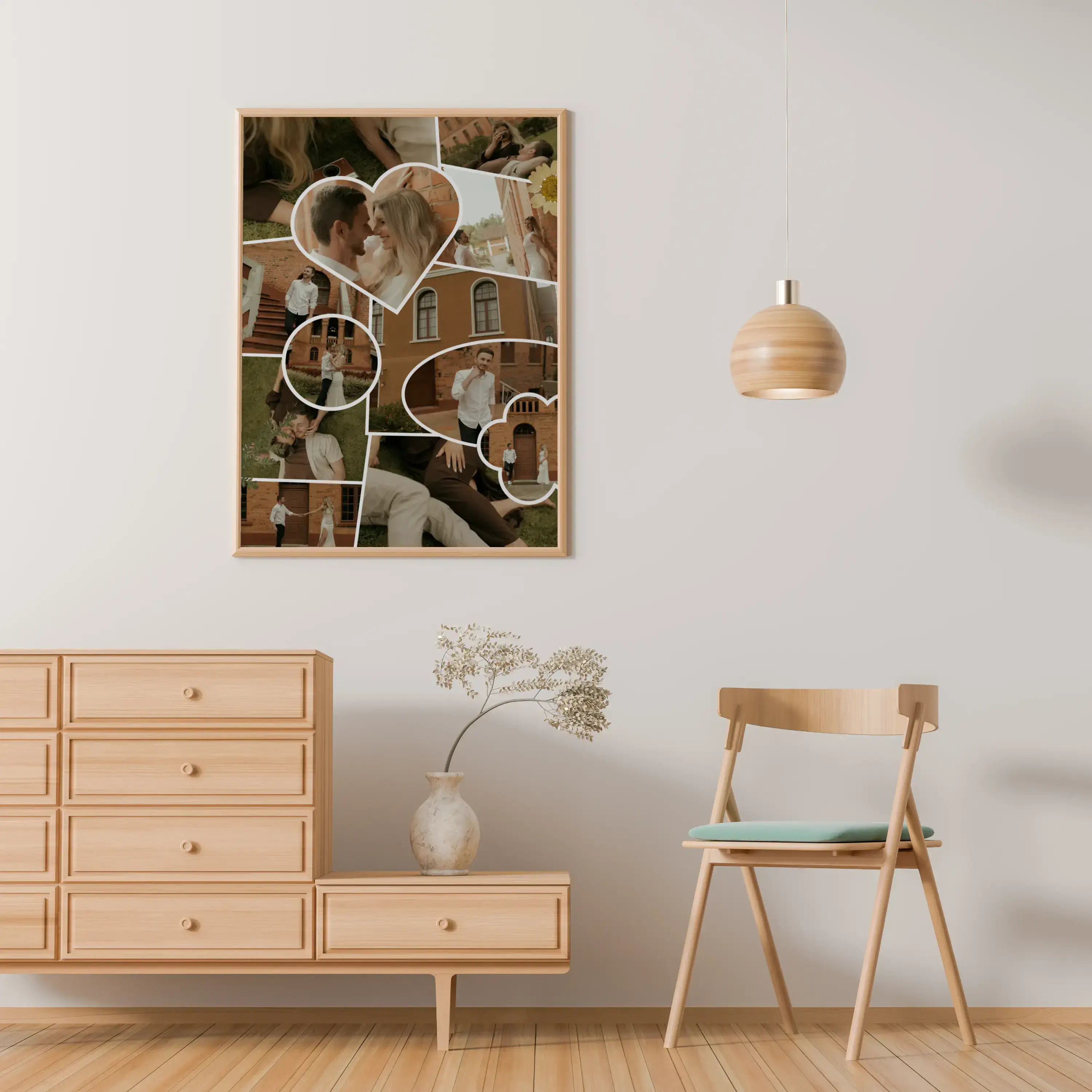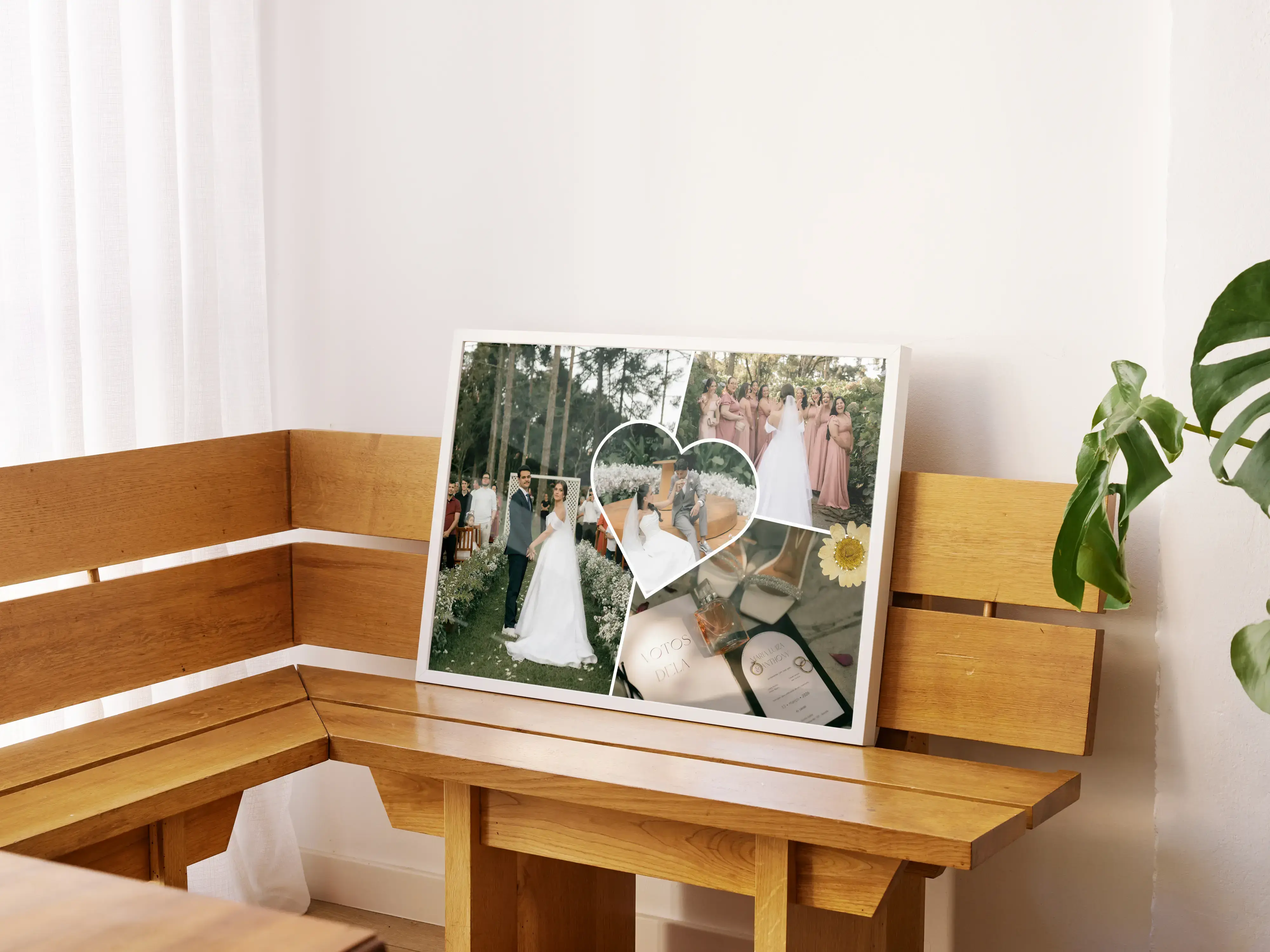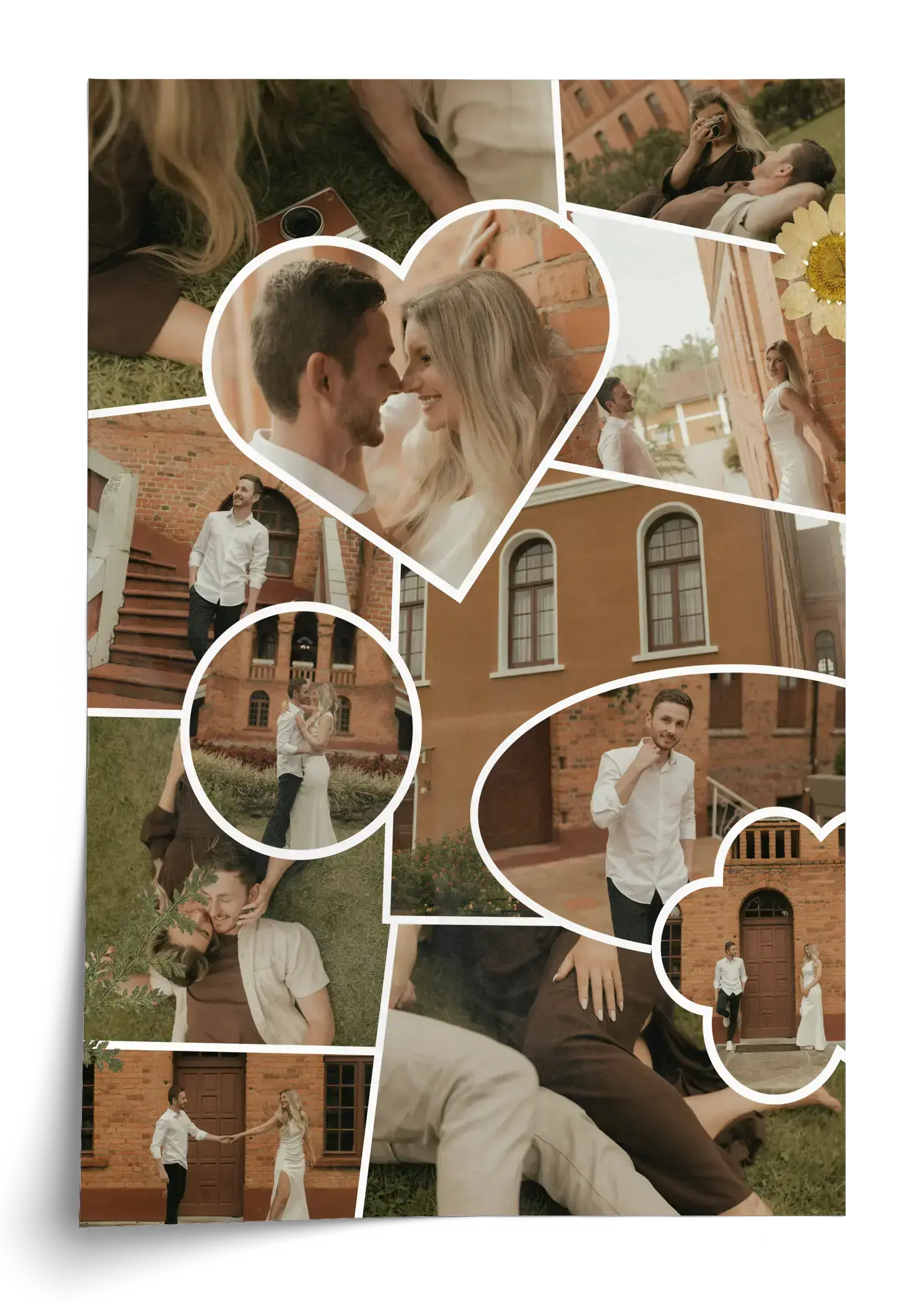 Deze collage past bijzonder goed bij een huwelijk, verloving of jubileum, maar werkt ook mooi als cadeau voor een partner, ouders of goede vrienden. Denk aan een herinnering aan de trouwdag, een overzicht van het aanzoek, een decoratie voor het feest of een persoonlijk geschenk voor een eerste huwelijksverjaardag.