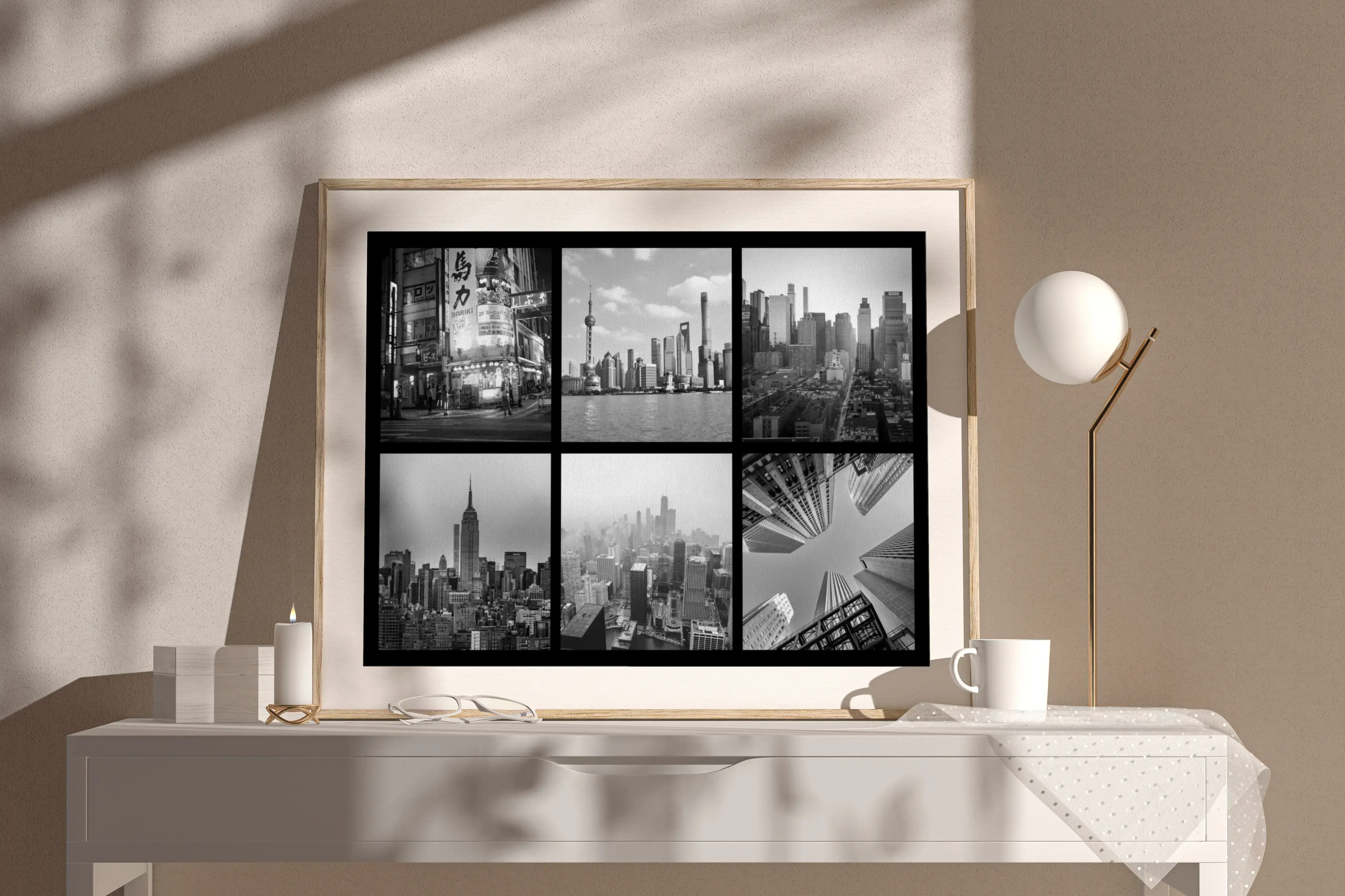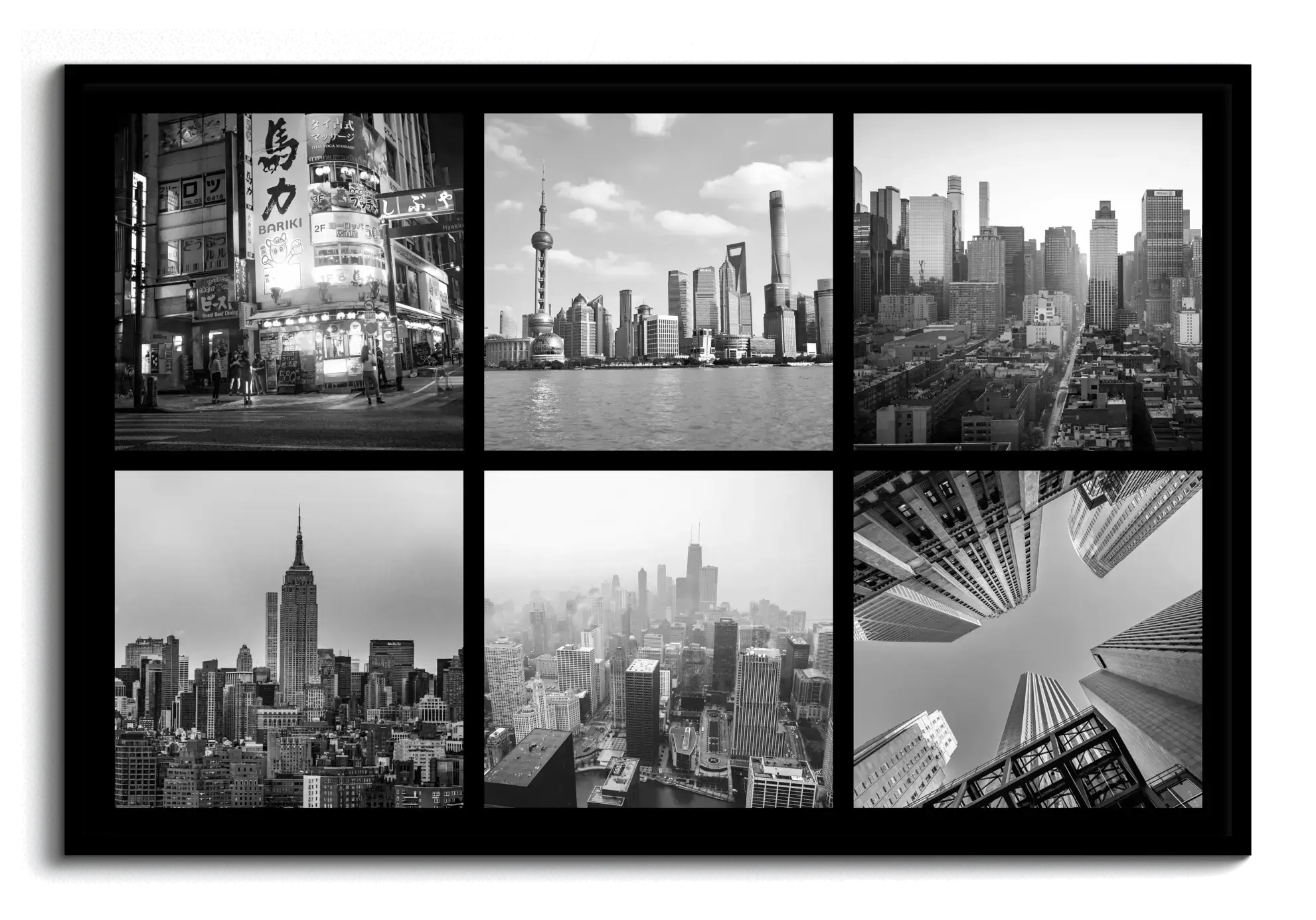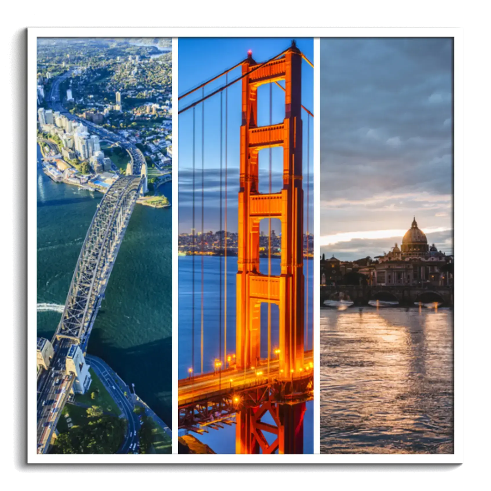Vakantiefoto’s als wandkunst: steden en bezienswaardigheden in collages met eigen tekst.